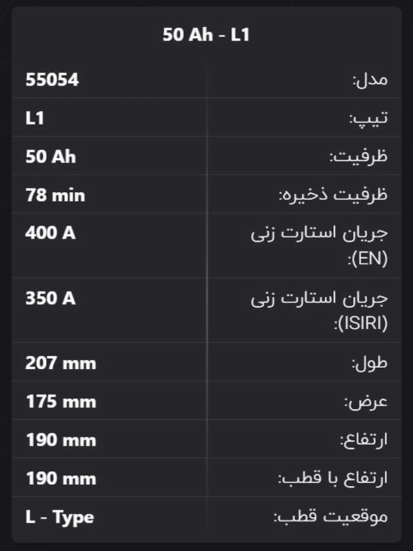 • 🔋 ظرفیت واقعی ۵۵ آمپر ساعت، مناسب خودروهای سواری